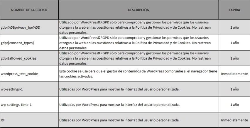 Las tablas de las cookies se irán actualizando según vayamos usando más en nuestra WEB, por nuevas funcionalidades de la misma. Bien es cierto, que en el momento de implantar esas nuevas funcionalidades, habrá un impás muy corto de tiempo en el que esas nuevas cookies no aparecerán en las tablas, hasta que no las tengamos al día. En este sentido, agradecemos tu comprensión.